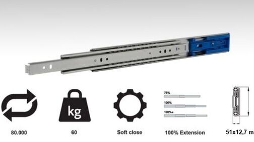 60kg Traglast Hochleistungsschiene / Soft Close Dämpfung